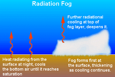 при безоблачной погоде и легком бризе. Часто радиационный туман возникает в