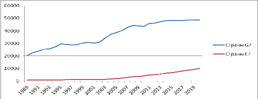 показателя для стран G7 и рост для стран Е7.