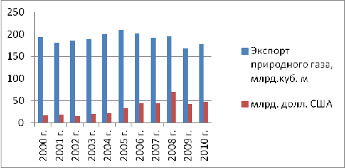 Экспорт Российской Федерации природного газа за 2000-2010 гг.