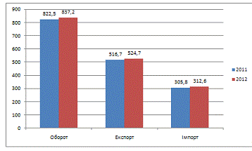 в 2012 році становив 1400 млн. доларів). В основному Україна експортує