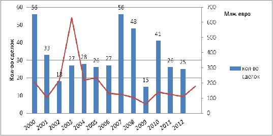 кризиса на эффективность слияний и поглощений в Европе в период 2000-2012 гг.