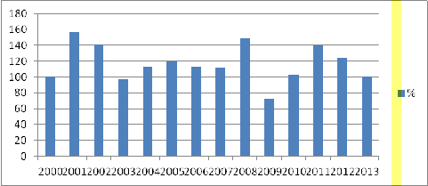 отношению к предыдущему году был: 2003 год - жбк, песок;