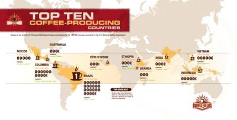 широти. До цього лежачого уздовж тропіків кавового «поясу» увійшли понад