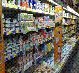 прилавків виставляються зразки наявних у продажу кисломолочних продуктів всіх