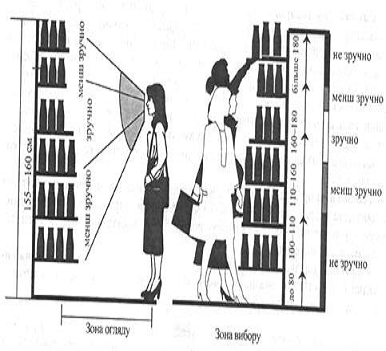 розміщують у торговельному залі раціонально і зручно, з дотриманням правил