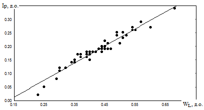 ІР та межею розкочування WР (значення коефіцієнта кореляції 0,79).