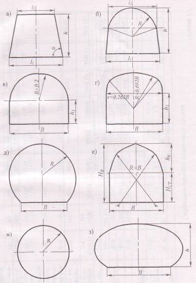 сводчатая; д - подковообразная; е - шатровая; ж - круглая; з - эллипсовидная