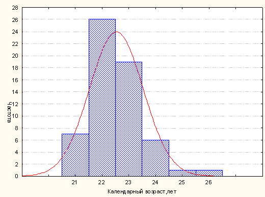 студентов, среднее арифметическое календарного возраста составляет 22,58±1,43
