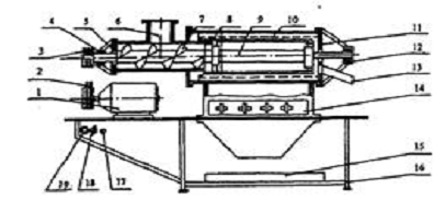 заключается в том, что мука засыпается в бункер, шнековым винтом подается к