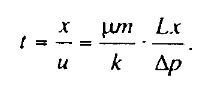 Время продвижения частицы жидкости на участке х, очевидно, запишется