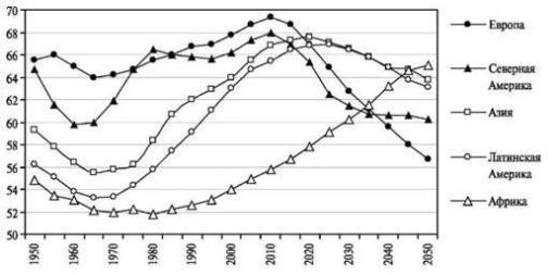 взрослая часть населения, доля которого в разных типах стран различна.