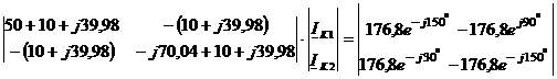 пользуясь методом Крамера, для чего находим комплексные определители системы: