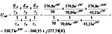 методом межузловых напряжений находим комплекс напряжения смещения нейтрали: