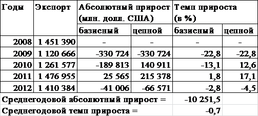 динамики внешней торговли, рассчитаем базисные и цепные показатели отдельно по