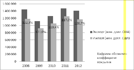 коэффициент покрытия импорта экспортом: В 2012 году Германия экспортировала на