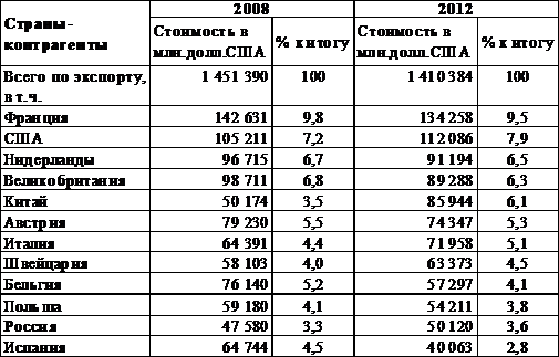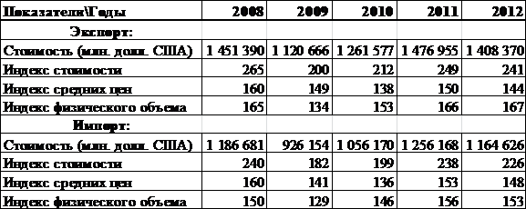 I. Динамика внешней торговли Германии за 2008-2012 годы