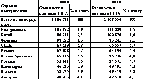 стран-экспортеров в 2008 году на третье в 2012. Сокращение доли импорта