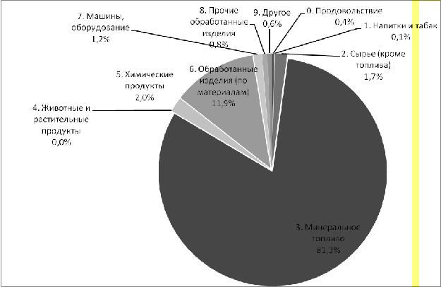 машины и оборудование (в основном за счет высокой цены), минеральное топливо и