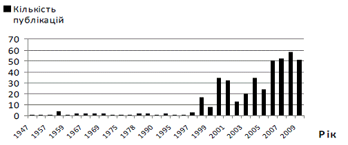 публікації в рік. Починаючи з 1997 року, кількість публікацій починає поступово