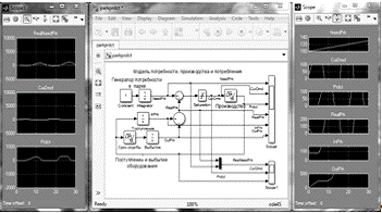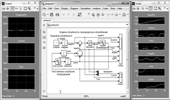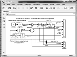 для анализа циклов перепроизводства, в которую позже было добавлено два блока Scope