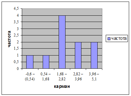 частотную таблицу. Зададим количество интервалов, например, 5 и определим длину