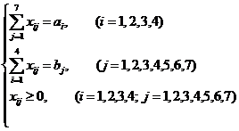 отправления; bj - потребность j-ой станции