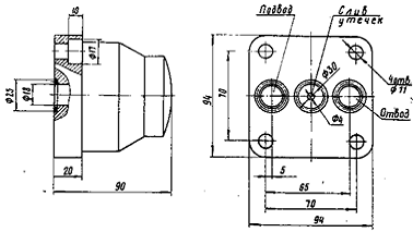 отвода основного потока масла и одно - для слива утечек. Уплотнение стыковой