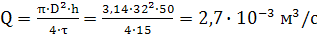 Имея в виду, что расход жидкости для