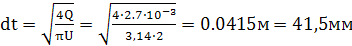 где dt- внутренний диаметр труб, получим