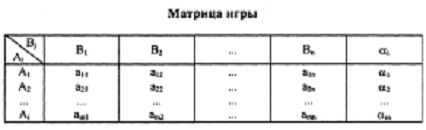 (математическое ожидание выигрыша стороны А, сделавшей свой i-й ход при j-м