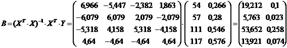 = 0,266. Построив матрицу спектра плана, провели эксперимент, в результате