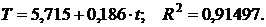 рассчитаем параметры линейного тренда, используя уровни (Т+Е). Уравнение тренда