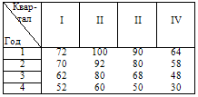 периодов одного цикла (год) равно четырем кварталам. Результаты расчетов сведем
