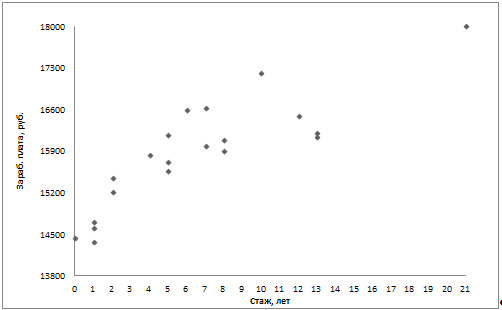показывает, что с увеличением стажа работы на 1 год заработная плата