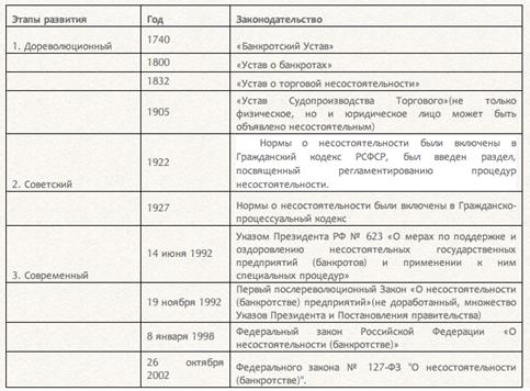 Становление и развитие отечественного законодательства о несостоятельности