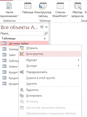 темы «Учет кредитов и займов» в среде Microsoft Access