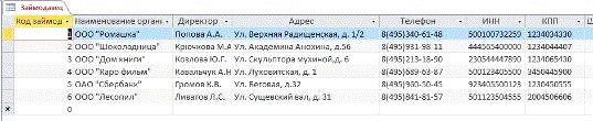 Рис. 23 Запрос «Договор займа, Заемщики на букву К»