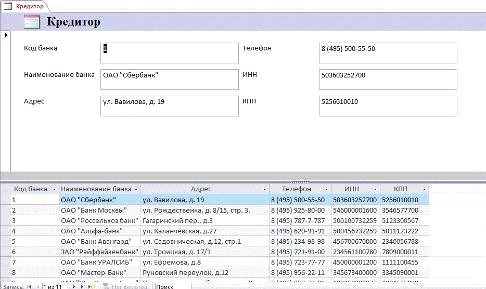 Автоматизация предметной области 'Учет кредитов и займов' средствами СУБД MSACCESS