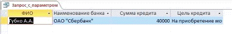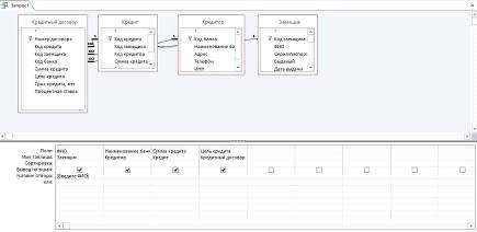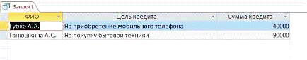 «Конструктор запросов» и записать следующее: выбрать цель кредита, ФИО заемщика