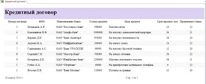 Аналогично создаем отчет «Кредитный договор» (смотри рис. 30)