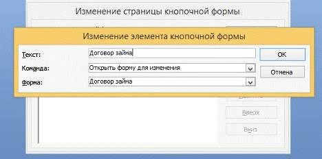 «Создание» (рис. 31) введем имя новой кнопочной формы «Учет кредитов и займов»