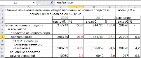 продукт с использованием электронных таблиц excel для оценки эффективности использования основных