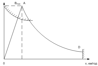 точках якої гальмова потужність (добуток гальмівної сили на швидкість)