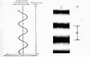 длине звуковой волны. Это периодическое возмущение изменяется как в