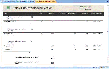 экран информацию о том, сколько раз клиенты заказали данную услугу. Для