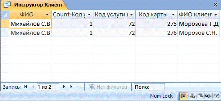 Рисунок 3.15 Запрос "Инструктор-Клиент" в режиме
