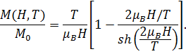 классического парамагнетика меняется с температурой по гиперболическому закону,