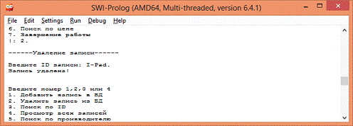 добавленна!'),nl,nl,menu.(2):-('------Удаление записи------'),nl,nl,('Введите
