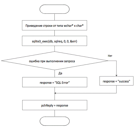 запрос, передает его на выполнение в СУБД SQLite. Результат также