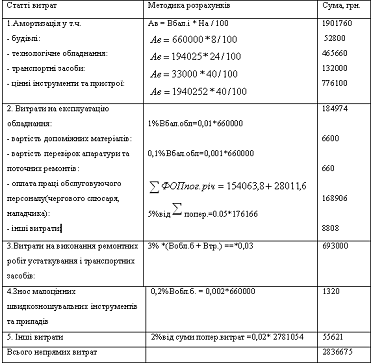 витрати на експлуатацію технологічного обладнання, амортизаційні відрахування